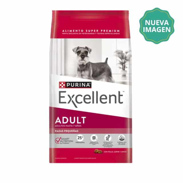 <h3><strong>DESCRIPCION</strong></h3> <p>Alimento balanceado seco</p> <p>Para perros cachorros de razas peque&ntilde;as.</p> <p><strong>Caracteristicas:</strong>&nbsp;En su primer a&ntilde;o de vida los cachorros necesitan una nutrici&oacute;n &oacute;ptima para favorecer su desarrollo y crecimiento.&nbsp;PURINA&reg;&nbsp;Excellent&reg;&nbsp;Cachorro Pollo y Arroz Razas Pequenas&nbsp;ofrece una f&oacute;rmula completa y balanceada a base de prote&iacute;nas de alta calidad,incluyendo tocoferoles mezclados -fuente de vitamina E- y sin colorantes ni saborizantes artificiales, para garantizar la calidad nutricional de sus f&oacute;rmulas y un sabor &uacute;nico e irresistible.</p> <p><strong>Ingredientes</strong>:&nbsp;Harina de subproductos de pollo, arroz, maiz, trigo, gluten de maiz, grasa vacuna (preservada con tocoferoles mezclados, fuente de vitamina E), harina de carne y hueso vacuna,&nbsp;digesto animal (a base de subproductos de pollo y/o porcino), harina de pescado, fibra de soja, inulina, cloruro de potasio, sal, suplementos vitaminicos (A, D3, E, K3, B1, B2, B3, B5, B6, B7, B9, B12, cloruro de colina), suplementos minerales (sulfato de zinc, sulfato ferroso, sulfato de cobre, sulfato de manganeso, proteinato de zinc, proteinato de hierro, proteinato de manganeso, proteinato de cobre, proteinato de selenio, yodato de calcio, selenito de sodio), zeolita, L-lisina, BHT.</p> <p><strong>Podes dejarnos en notas, cualquier informaci&oacute;n que quieras darnos como horario especial de entrega, colores preferidos o lo que consideres necesario para tu pedido</strong></p>